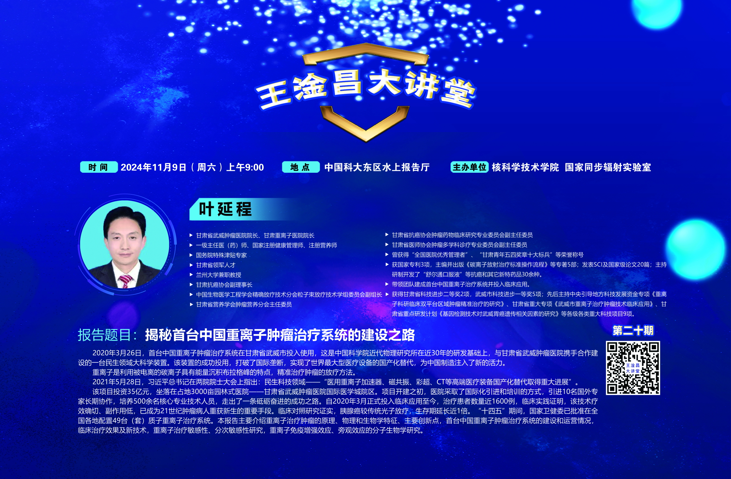 报告题目:揭秘首台中国重离子肿瘤治疗系统的建设之路
