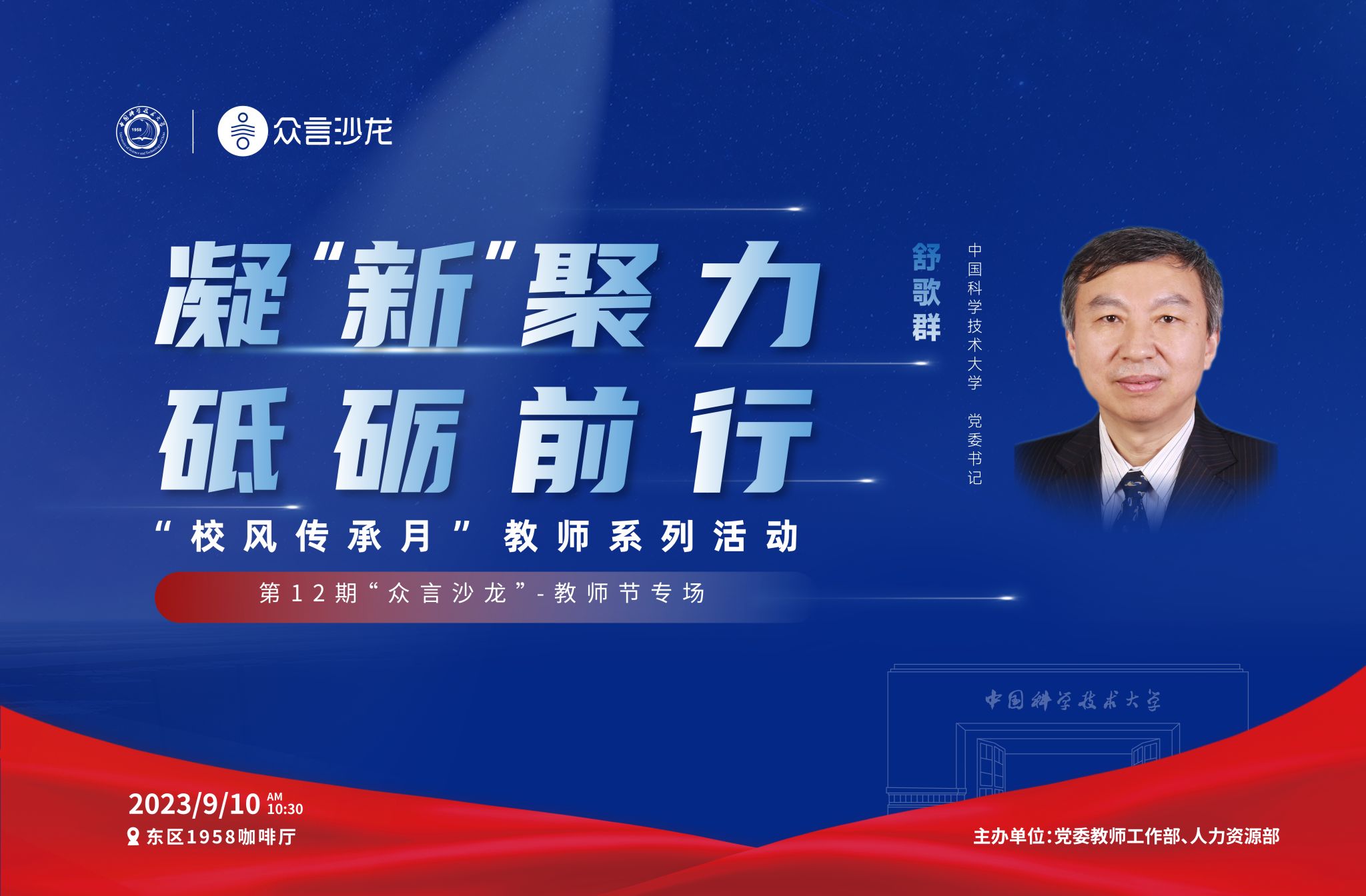 | 第12期“众言沙龙”——教师节专场(嘉宾:校党委书记 舒歌群) |