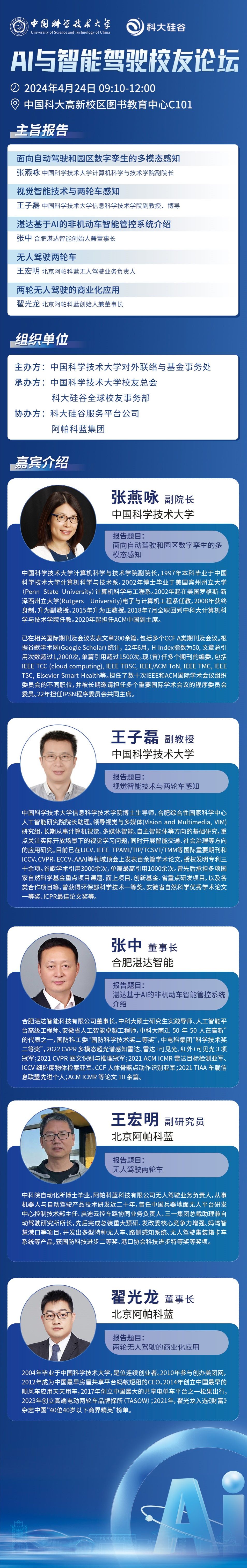 拥抱新趋势,畅谈新未来。4月24日(周三)上午9:10,“AI与智能驾驶校友论坛”将在高新校区图书教育中心C101举办,欢迎全校感兴趣的师生参加。