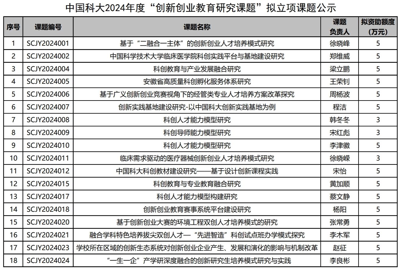 开云足球2024年度“创新创业教育研究课题”申报评审工作已顺利结束,经过课题申报、资格审查、专家评审等环节,确定“基于‘二融合一主体’的创新创业人才培养模式研究”等18个课题为我校2024年度“创新创业教育研究课题”拟立项课题,公示如下。