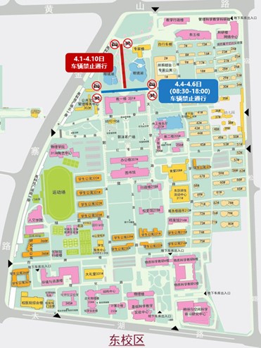 学校樱花已进入盛开期,为维护好现场的交通秩序,给广大师生营造良好的赏樱环境,拟于2025年4月1日至4月10日期间(将根据花期适当调整),对东校区玉泉北路交通进行临时管控(如图示)。此外,4月4日至4月6日清明节假期将对东校区瀚海路西侧路段进行临时管控(如图示,管控时间08:30—18:00),期间机动车辆、非机动车辆请绕行。给您带来的不便,敬请谅解!