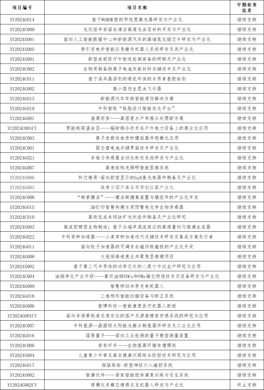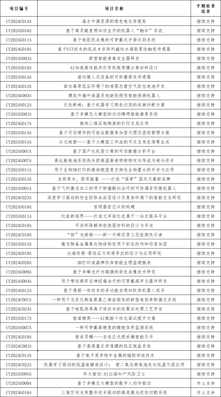 按照工作安排,根据《关于开展2024学年“雏鹰基金”、“雄鹰基金”中期检查的通知》要求,经材料提交、走访核实、二次复核及专家评审,确定“基于极大望远镜边缘传感器的关键技术研究”等136个“雏鹰基金”项目作为继续支持项目;确定“基于WGM微腔的窄线宽激光器研发与产业化”等37个“雄鹰基金”项目作为继续支持项目。现将中期检查结果公布如下: