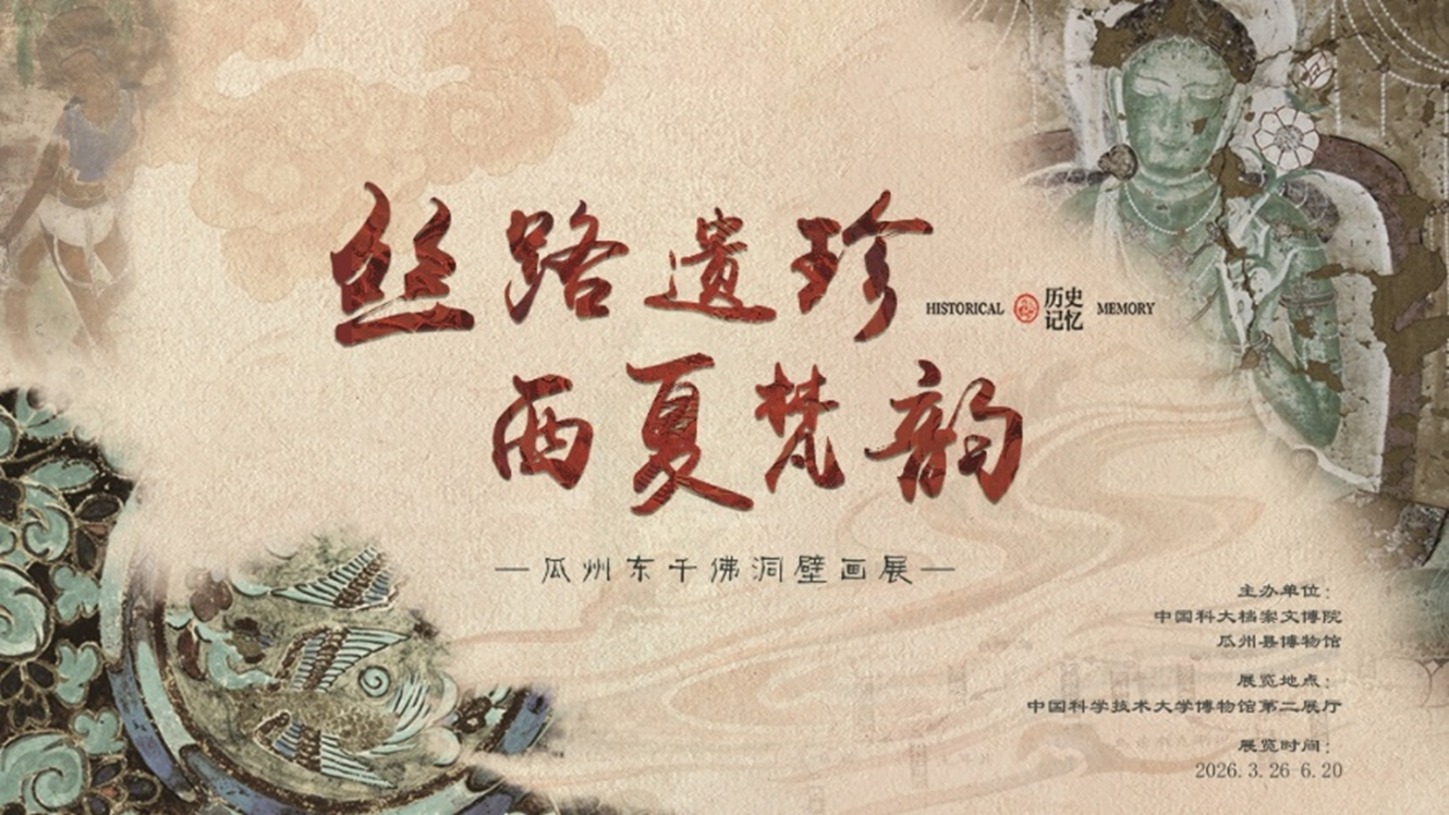 为让全校师生触摸丝路文明的千年脉动,中国科大档案文博院携手瓜州县博物馆推出《丝路遗珍 西夏梵韵——瓜州东千佛洞壁画展》。展览甄选23幅西夏壁画珍品,让大漠石窟中的艺术瑰宝走进校园,引领观者沉浸于一场融信仰、美学与历史于一体的丝路精神之旅。